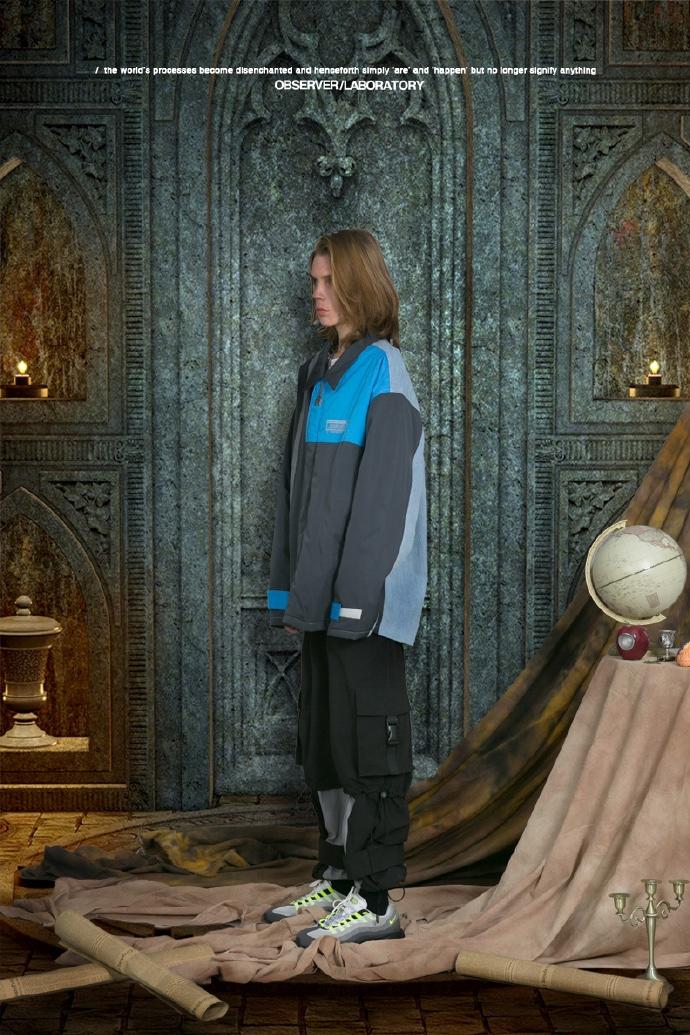 OBSERVER LAB本季度19S/S继续围绕“当下青年一代社会中的互联网与现实消费主义的反思”话题展开,也依旧将设计团队喜爱的元素和此前所积攒的灵感来源进行串联,并从电影《少数派报告》,费米悖论(Fermi paradox),“赫维留星图”以及德国思想家马克斯·韦伯(Max Weber)的《社会宗教学(Sociology of Religion)》和小说《金羊毛》中提取设计灵感,而呈现的氛围重点则是:“占星师”,“宗教感”,“经典硬核科幻电影”。