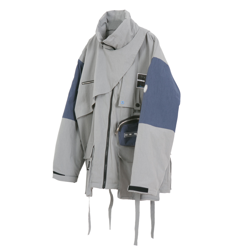 设计亮点:19S/S 宗教感披肩拼接作训服机能外套糅合了天文元素,宗教服饰以及机能感这三个关键词,在常规的作训外套基础上将从宗教服饰中提取出的半披肩设计进行创新结构重塑。