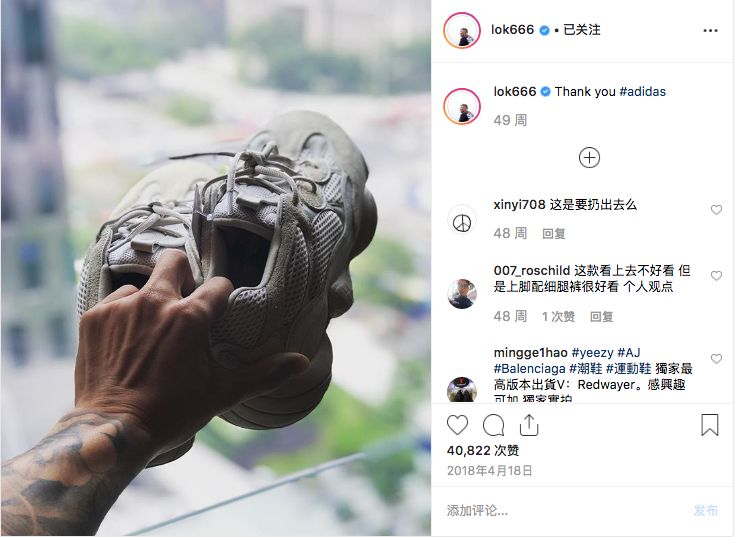 从不久前的ins互动来看,六叔已经成功入手新鞋