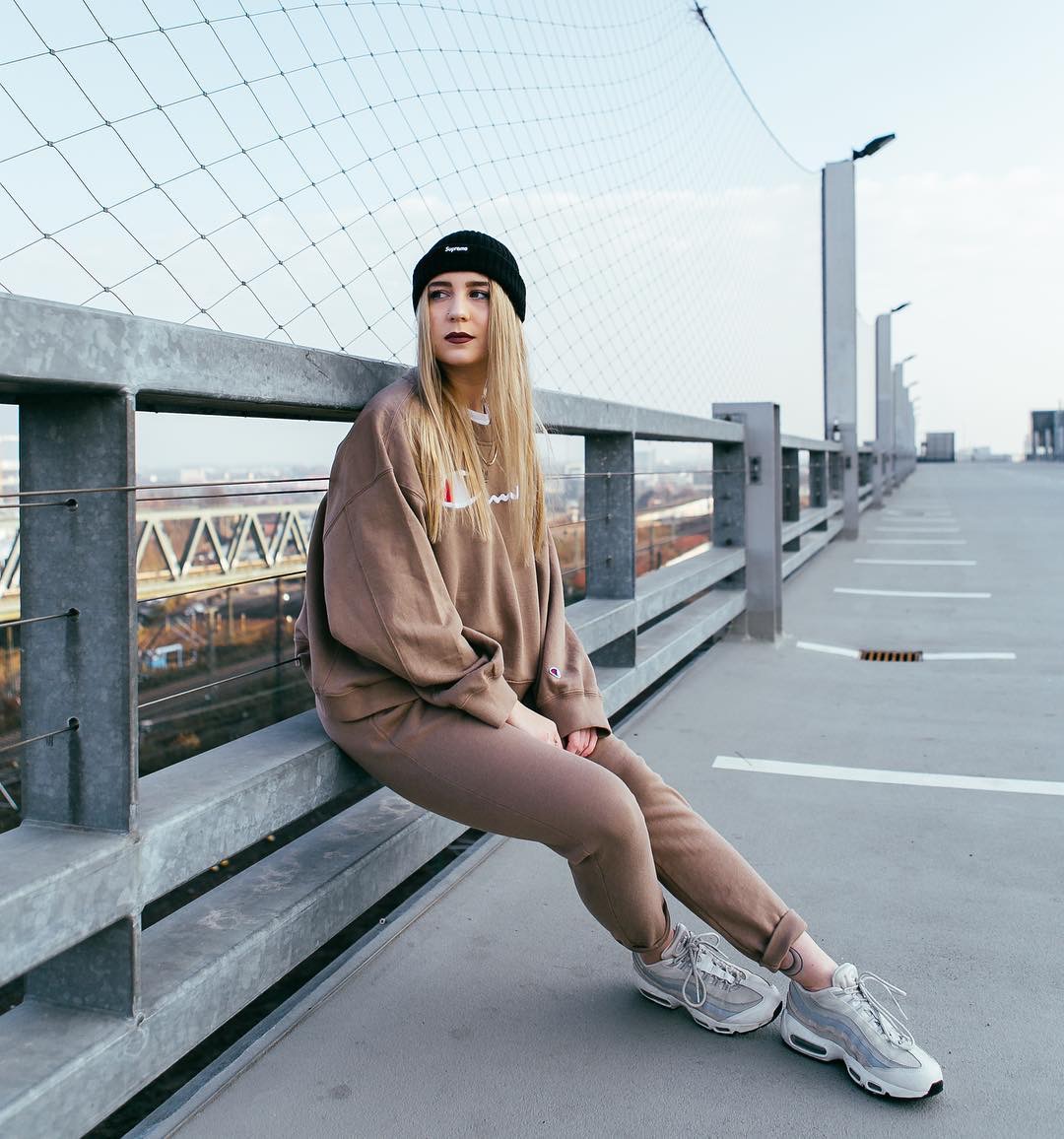 alinazhlv是来自莫斯科的街头潮流博主,把alinazhlv放到这里的原因是因为其并没有十分精致的面庞五官与傲人的身材,但是搭配功底十分了得,适合普通女孩们借鉴。Champion基本款与Reebok的复古运动套装并不是高阶单品,但是一样可以搭配出十分出众的效果,亦是能掩盖身材的不足。