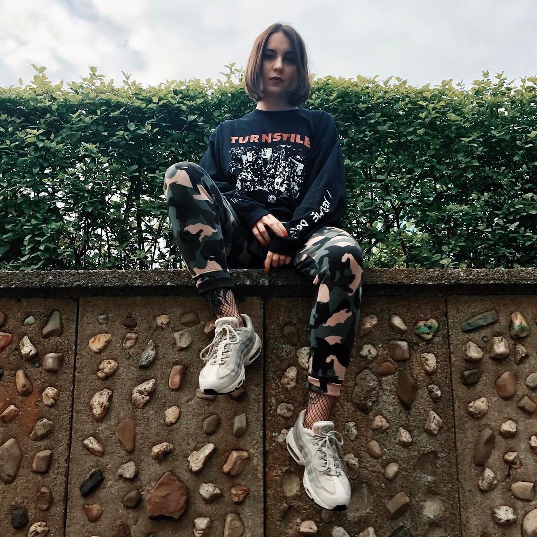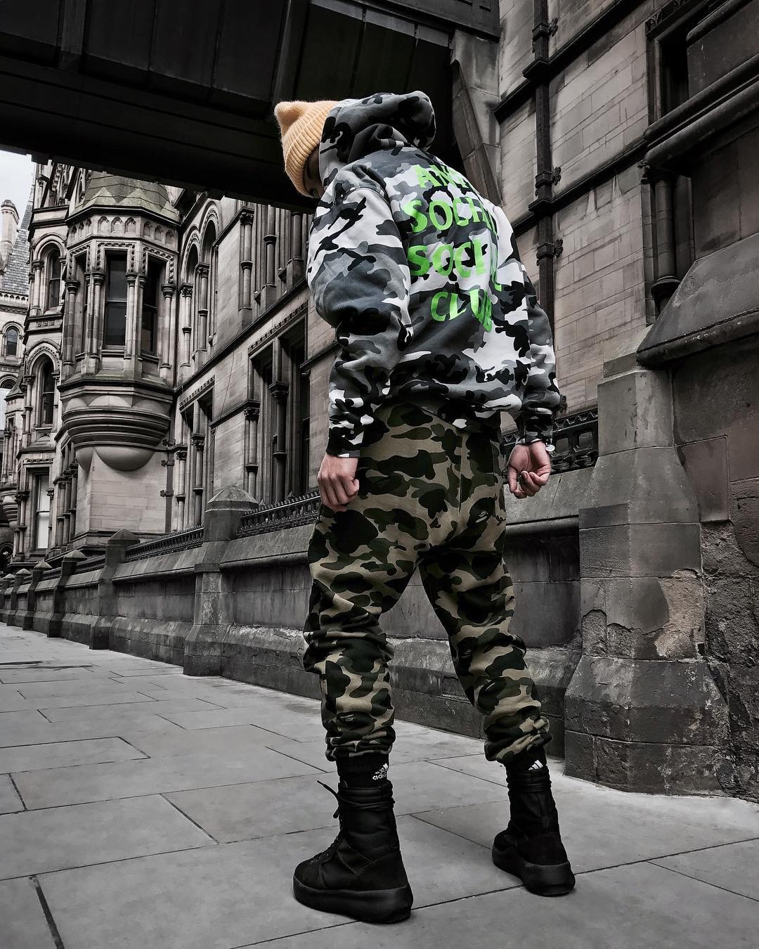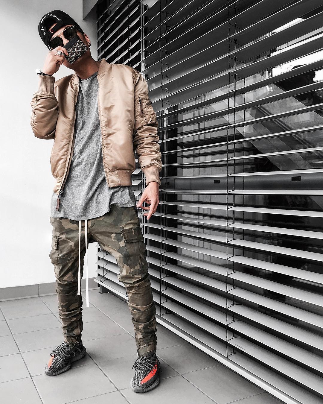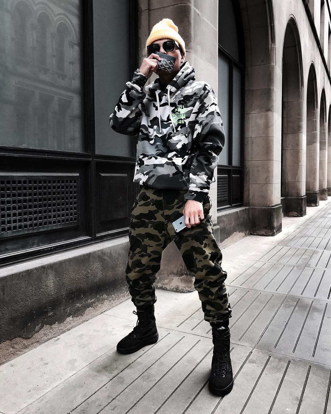 迷彩元素的大胆融入使得整体搭配辨识度极高