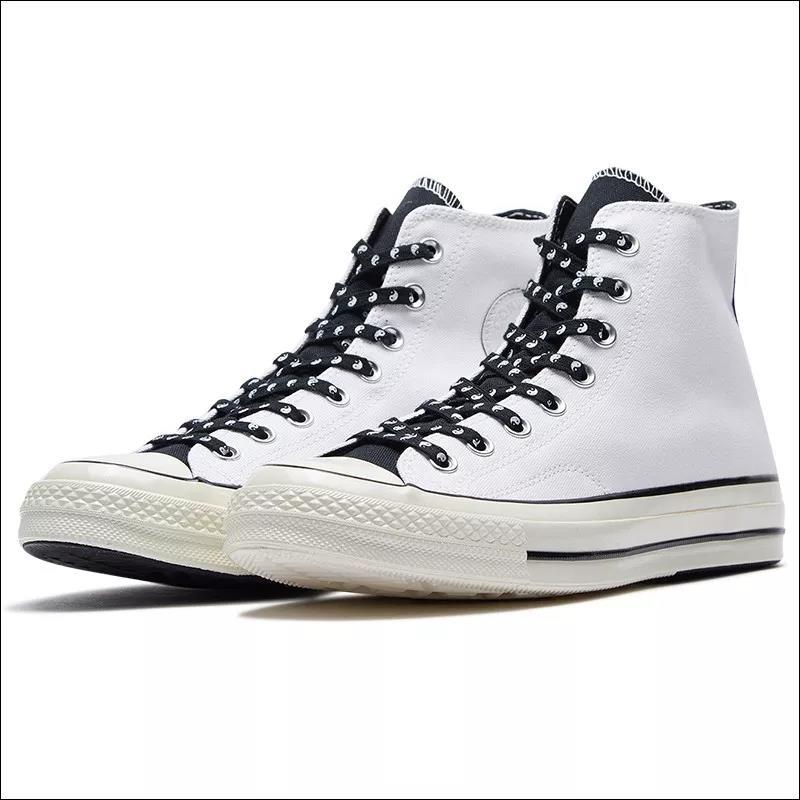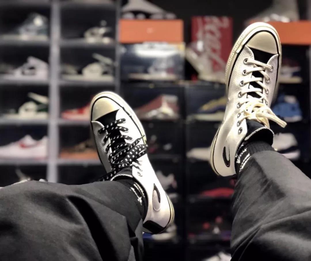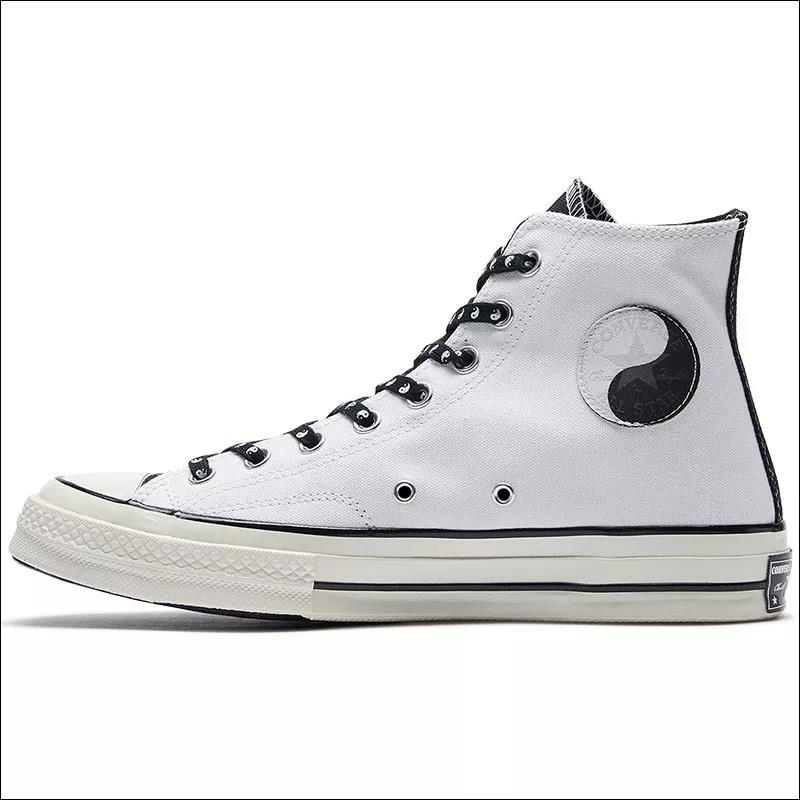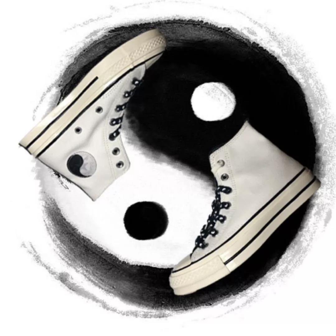 乍看之下,这双黑白配色的 Chuck 70 的确挺有卖点,黑白配色神似和 Fear of God Essential 的联名,鞋带上的太极八卦让人想到了和 CLOT 联名的 One Star。最主要的是,它是一双 Chuck 70,同时还不算普通款。