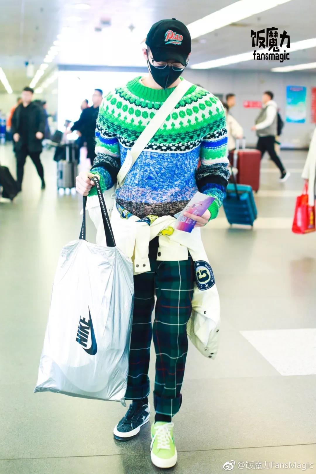 明星艺人的“街拍”越来越多的是在机场中完成,近日,有一名艺人的机场照引起了我的强烈关注,不是因为他穿了什么狠货,而是由于脚下混搭了一双“鸳鸯”鞋。把鞋配鸳鸯来穿其实也并非什么新鲜事,只不过,这位小哥的球鞋组合特别新鲜,把 CONVERSE 两组不同的联名混搭了起来,左脚绿色 GOLF le FLEUR*,右脚藏青色 CLOT,尽管都是 One Star 鞋型,但两只鞋的设计完全没有关联,所以这样搭配格外突兀,这鸳鸯是为了搭配毛衣和裤子吗?