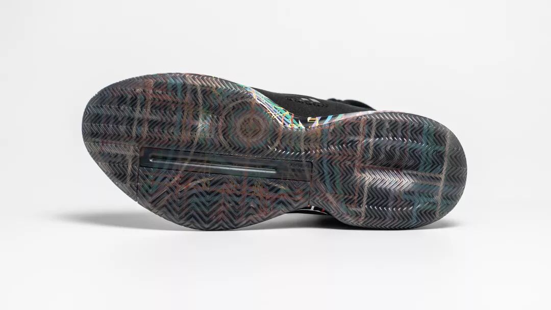 这种加宽式的一个外底搭配上这样一个侧向TPU的设计它的稳定效果是比大多数追求灵活性的球鞋都要好上不少。如果你是有脚踝伤病或者说是担心在脚踝这块出现扭伤的朋友的话