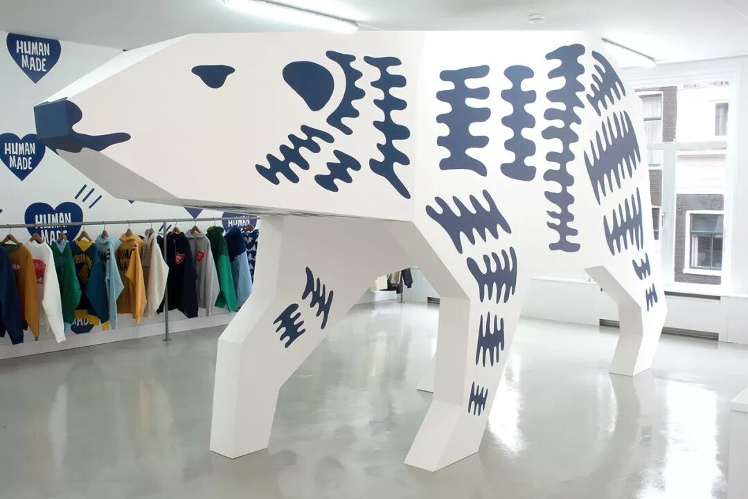 今年2月,Girls Don't Cry 和 Human Made 的重磅联名就邀请后者的主理人 NIGO® 一同参与在阿姆斯特丹 Oallery 店铺的发售。为配合出现在联名产品上的 Human Made 标志性的北极熊图案,现场更是搭建了一个硕大的北极熊模型。