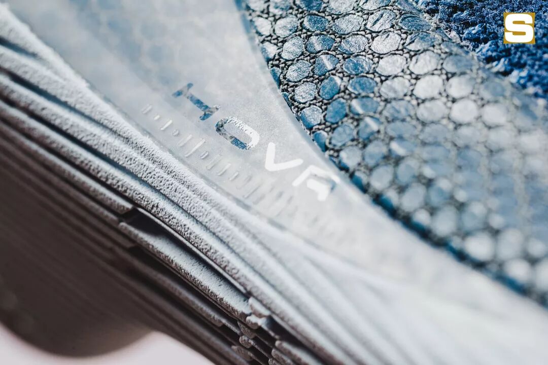 鞋身的蓝色织物如同黑夜的天空一般缠绵细腻,