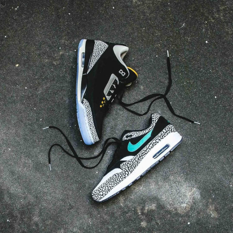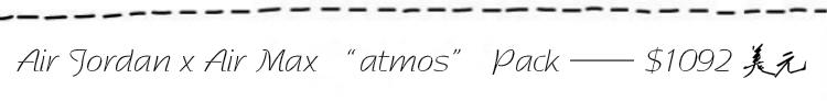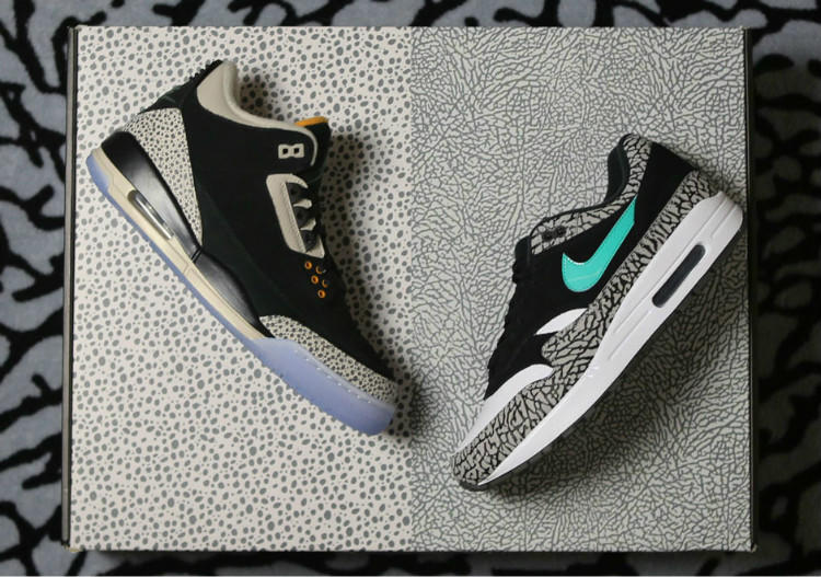 Jordan Brand携手NSW推出的Air Jordan x Air Max“atmos”Pack,作为Air Max家族的30周年庆典的献礼,不仅有大家熟知的通过去年Vote Back的“回归投票”选出的Air Max 1“amos Elephant”,还有一款Air Jordan 3“atmos Safari”!套装中Air Max 1和Air Jordan 3双方经典元素的对调,无疑让两双鞋款都更具特色,市场价的节节攀升也就不言而喻了。