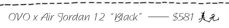 被誉为“跳票之王”的OVO x Air Jordan 12“White”在去年是吊足了鞋迷们的胃口,尽管多次跳票但仍难以抵挡鞋迷们的热情。 以黑色磨砂皮革结合质感出众的魔鬼鱼皮打造而成的OVO x Air Jordan 12“Black”与去年的“跳票之王”有着异曲同工之妙,再辅以OVO限量光环的加持,市场价成功实现了在发售价225美元的基础上翻番。