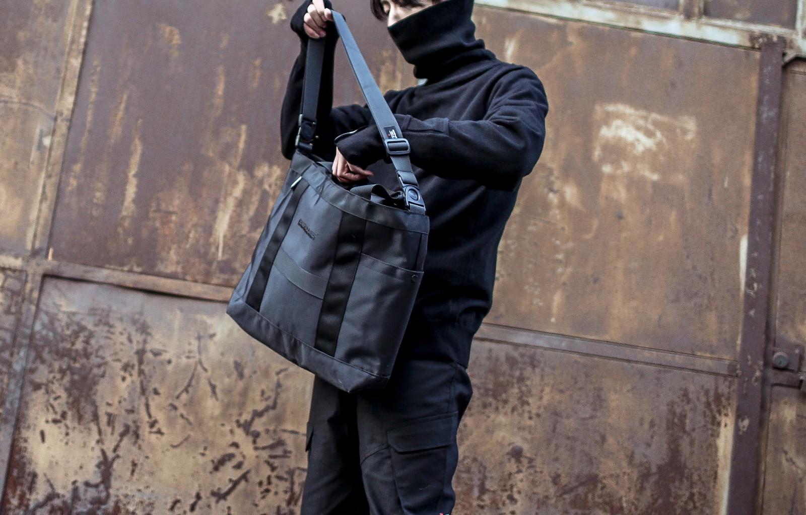如果男生觉得普通的托特包太娘又缺少一个能装很多东西的提包的话,这种机能元素的托特包会是不错的选择。