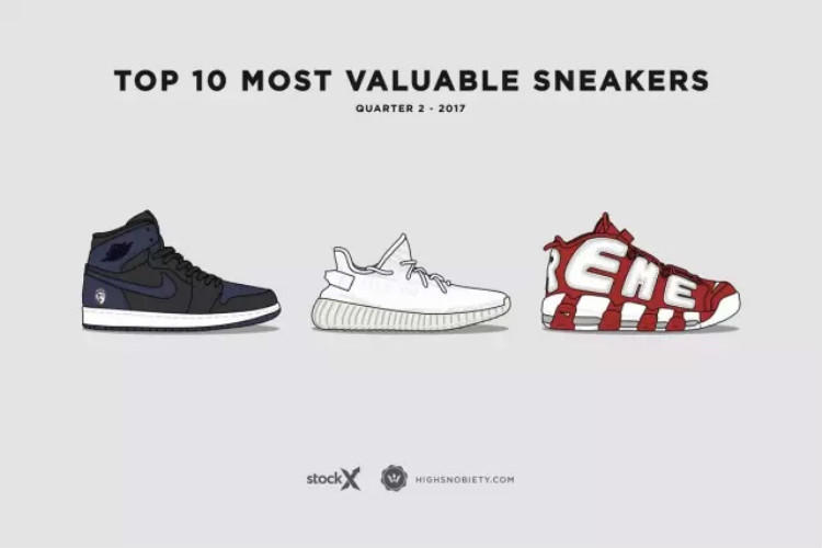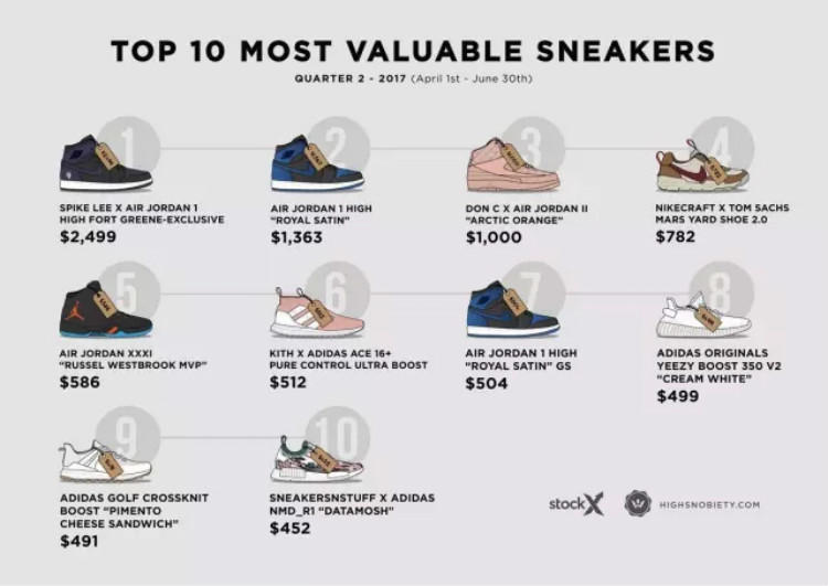 还记得小编在之前写过的这篇《弎言两语|一双都买不起!2017年第一季度最贵的十双鞋》吗?近日,专业球鞋数据网站Stock X再次携手潮流媒体Highsnobiety继续为我们带来2017年第二季度球鞋市场十大最贵排行榜。不出意料的是,这次榜单中的十双鞋款,小编依旧是一双都买不起!