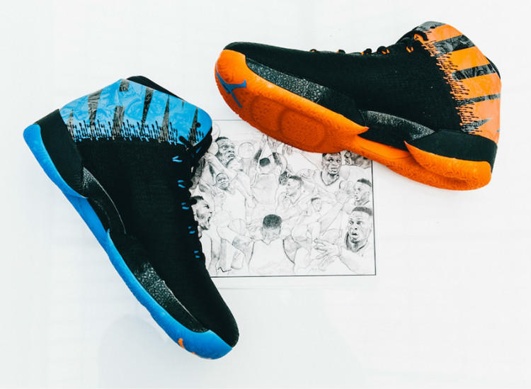 凭借着一个赛季的劲爆表现,雷霆当家球星拉塞尔-威斯布鲁克不仅打破了多项历史纪录、缔造了全新的三双纪录、还实至名“龟”的获得了个人首座常规赛MVP奖杯。如此伟大的时刻,Jordan Brand用一双Air Jordan XXXI“Russel Westbrook”来铭记,以象征着雷霆队的蓝橙鸳鸯配色来分别打造左右两只球鞋,“WHY NOT”字样极具个人辨识度。你以为这样一双具有纪念意义的球鞋设计就这么简单?3M反光之下暗藏的威少本人漫画细节才是这双鞋款的最大彩蛋。