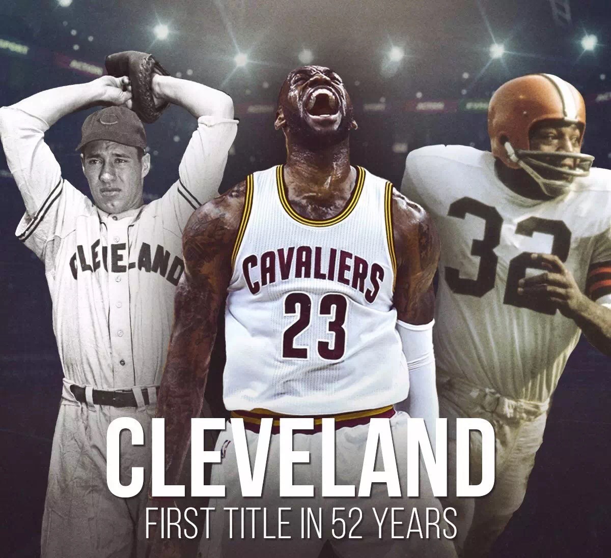 见证总冠军的诞生对于其主队球迷来讲还有比这更幸福的事情么!尤其当这发生在克利夫兰这座城市,只有克利夫兰人最懂这份城市荣誉意味着什么,要知道克利夫兰这座城市已经有半个世纪没有染指四大联盟的冠军了,自1964年布朗人在NFL夺魁后,52年来这里被人们嘲笑是“诅咒之城”,但他们却从未放弃,他们将克利夫兰称为“Believeland”,他们相信这座城市一定会在某一天打破这个魔咒。