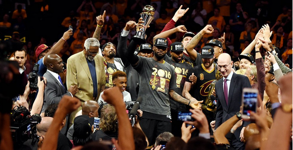 2015—16赛季,骑士在极不被看好的情况下,面对强大的卫冕冠军,在1:3落后的情况下,在连续的 WIN OR GO HOME 的极大身理心理考验下,在6月20号,美国时间的父亲节,骑士最终以93:89 四分优势成功逆转勇士,在客场捧得队史首座总冠军奖杯!