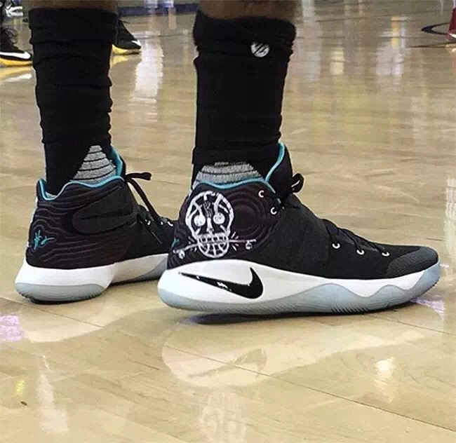 欧文上脚了 Kyrie 2 “Skateboard”,但在下半场换上了G1穿过的的黑金 PE 配色。