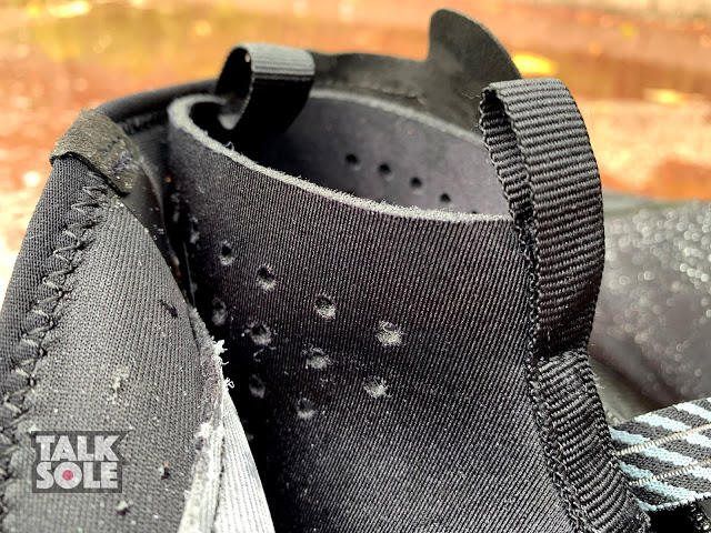 可是最利害的武功也有弱点,那就是鞋领最顶端的位置,可以看到那处的接驳位,而且并没有多一层抗水内笼辅助,雨势微弱都足够支持,遇着滂沱大雨时,鞋领的快干物料也会感到沾湿的感觉,当然这种恶劣天气下你也不会长时间曝露在室外进行运动吧!