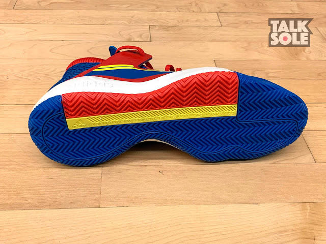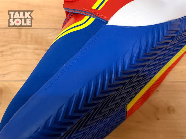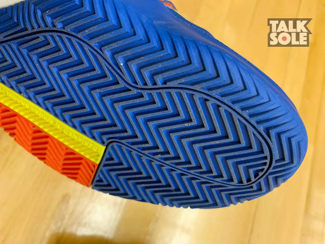 鞋底用上人字形纹路,亦细心地在外侧画出一部分不同方向的纹路,令你在冲刺或横移时亦能抓紧地面再作出下一步动作,加上前掌 BOUNCE 较薄及贴地,令球鞋反应性能进一步提升。