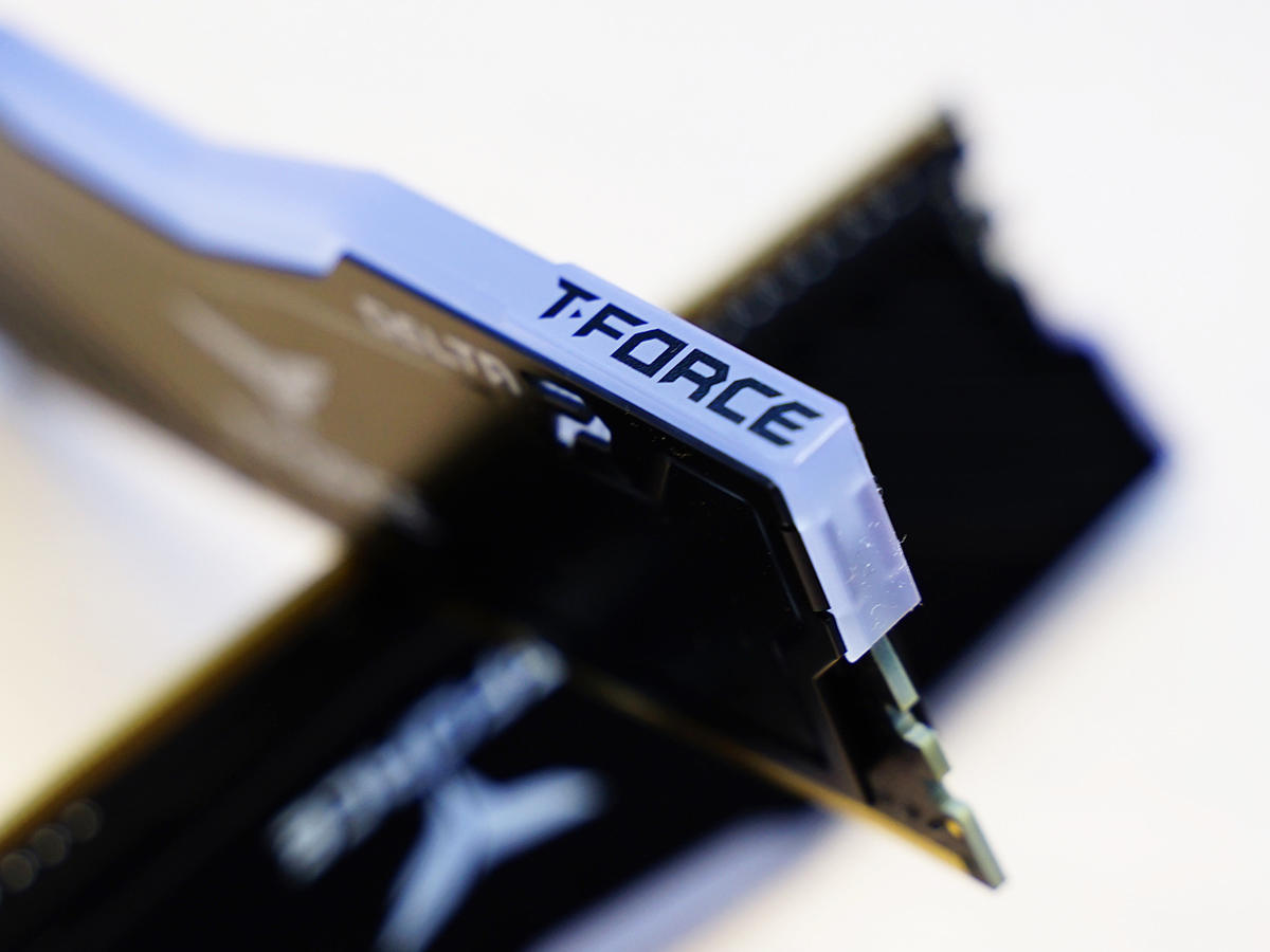 ▼内存本体采用了通体的黑色喷漆(也有白色款),正面印有T-FORCE字样以及图形logo