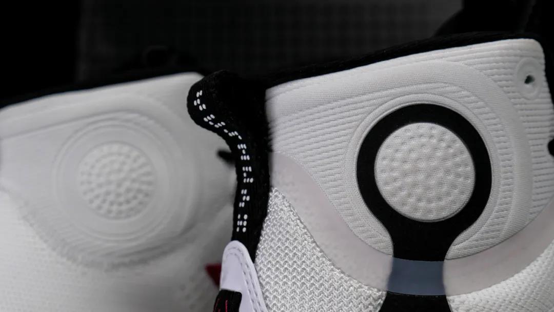 球鞋整体是用到了一个中帮的造型,13代的那个超高帮当时真的是非常卡跟腱,14的这个我觉得是会舒服一点的。