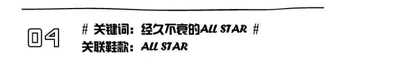 很多时候它都是出门前的第一选择,无论什么造型都能搭,随意也好正装也罢,每天还有无数创新的搭配造型给予All Star新的诠释。它完美的鞋身轮廓无论在何时都不会过时。