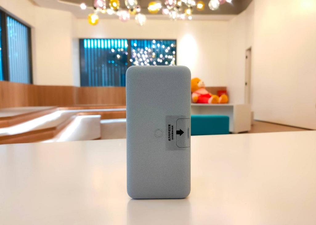 侧边还有一个独立设计的按键,在不进行任何充电时可通过短按按键来查看充电宝的电量情况,同时也是无线充电的激活按键。