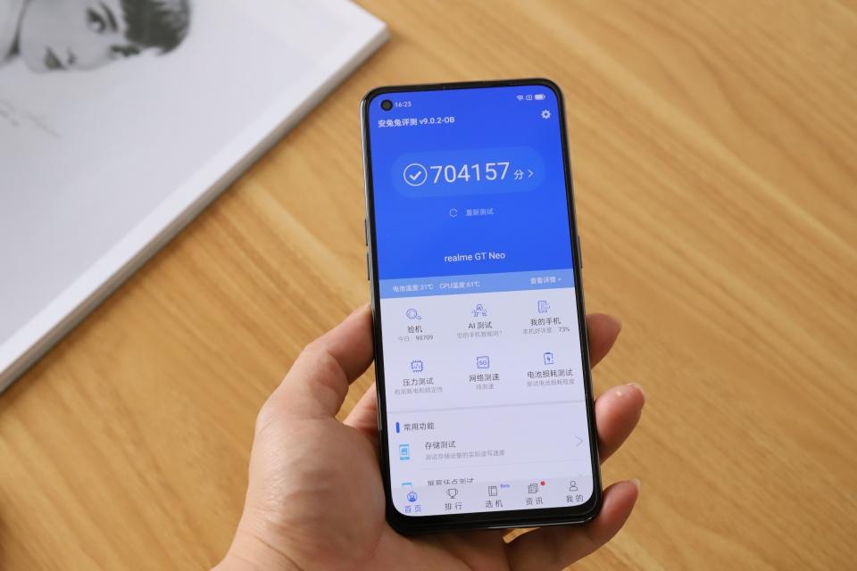 想要做到旗舰级别的体验水准,最重要的自然还是性能。realme GT Neo搭载的是联发科天玑1200处理器,这颗芯片采用的是6nm工艺制程,实际的安兔兔跑分能够达到71万分左右。这样的性能表现在目前的安卓手机当中也算是顶级水准,仅仅次于高通骁龙888处理器,而比骁龙870的效果反而是更好一些。