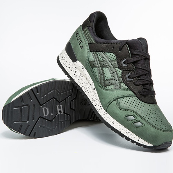 ASICS GEL-LYTE III 石墨(墨绿)配色,鞋面才有高端球鞋才采用的麂皮材质,以墨绿与黑色为主色调,低调百搭,鞋面多处透气孔设计,确保穿着透气,鞋底边加入泼墨设计,让整体鞋型看上去更具复古气息,限定款式,值得入手。