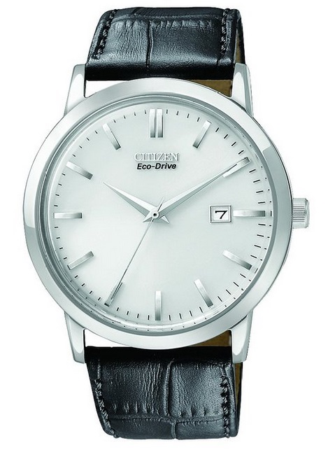 西铁城 Eco-Drive BM7190-05A 男款光动能手表,设计简单干净,素雅利落。经典的白色表盘搭配银色时标和指针及表圈,简约大方,一目了然。采用西铁城标志性的光动能技术驱动,无论是日光还是室内光源都可为其充电。黑色鳄鱼纹表带,不锈钢表壳,防划矿物玻璃表镜,40mm表盘直径,3点钟位置显示日期,厚度10mm,防水30m。