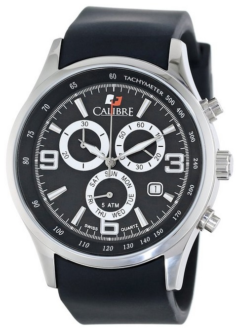Calibre SC-4M1-04-007 男款石英手表,黑色皮质表带,银色精钢表壳,三眼计时设计,四点处带有日期功能,整体设计中规中矩,50米防水可以应付日常洗手、下雨时溅到的水滴等,作为一款时装表还是不错的!