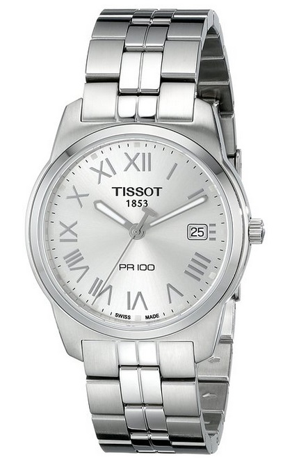 Tissot天梭 T049.410.11.033.01 PR100米防水瑞士制造不锈钢男表,银色精钢表壳,瑞士原产石英机芯,38mm表径,罗马数字刻度,相当有格调,3点处有日期功能,银白色指针,100米防水,总体而言很不错!