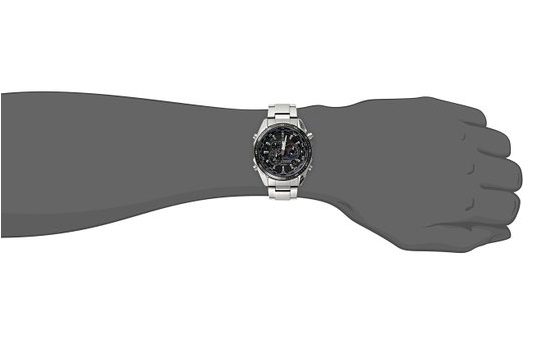 三眼七针,包含24小时转换、第二时区的时针和 分针、日期、1/100秒针等。电镀黑离子表框,强化矿物水晶表镜,实心不锈钢表带。100米防水、1/100秒表、全自动万年历、闹钟、世界时间、夜光 等。表盘直径46mm,厚度为12.3mm。