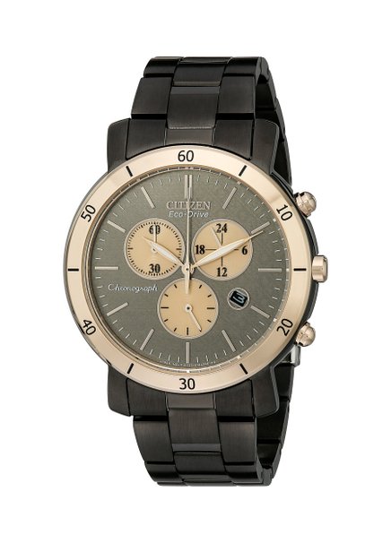 这款CITIZEN 西铁城 编号FB1348-50E的西铁城女士手表,采用西铁城当家技术Eco-Drive 光动能机芯,可吸收可见光作为能源,终身无需更换电池。使用经过离子镀黑处理防反光的不锈钢表带,搭配玫瑰金表壳,三眼计时小表盘包括12/24小时显示、60分钟计时,四点钟方向日期显示,防划矿物玻璃表镜,表盘直径为41mm,防水30米。