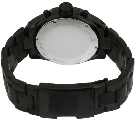 这款Fossil 化石 CH2601 男士石英钢表,在不锈钢外壳下,配有闪亮指针的黑色计时器表盘散发出夺目光彩。 精致打磨并经过黑色离子电镀的不锈钢表带更加彰显迷人质感。三眼计时款式。四点钟位置显示日期。此款手表表径44mm,厚13mm。防水100米。