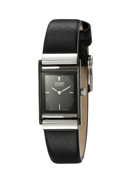 这款西铁城女士Eco-Drive光动能石英手表内置精确日本石英机芯,采用Eco-Drive技术利用自然光供能,无需更换电池,节能环保,外观采用黑色真皮表带搭配黑色不锈钢表壳设计,经典优雅,气质非凡,防刮耐磨矿物玻璃表镜下为黑色纹理表盘,表盘上镶有银色全时刻度,时分指针,表盘直径18mm,防水深度30m。