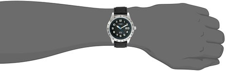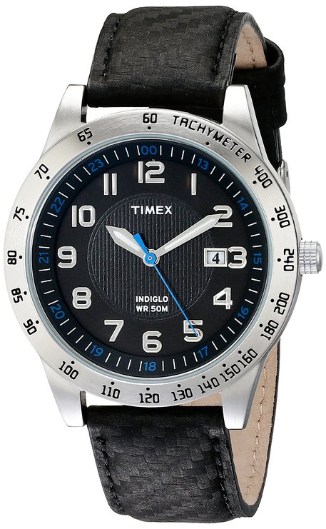 这款TIMEX 天美时 T2N920 男式手表,小牛皮编织纹腕带,银色黄铜材质表壳带测速仪功能,黑色表盘配文艺蓝色小秒针。3点钟位置日期显示,表盘直径42mm,厚度为10mm,TIMEX招牌式的INDIGLO®夜光表盘,防划矿物表镜,防水深度50米。