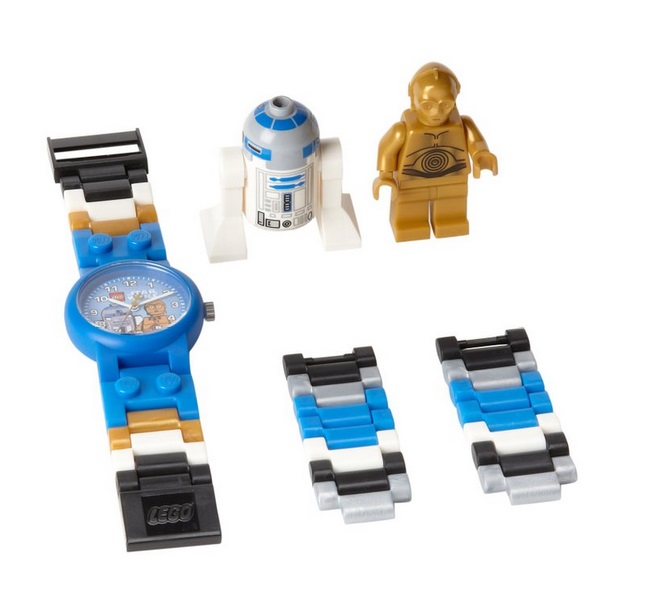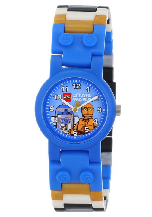 LEGO乐高 Kids Star Wars C-3PO and R2-D2 Plastic Watch 星战系列 儿童手表,内含一块手表+2个公仔,分别为可爱的C-3PO和R2-D2。作为多色模块组成的表带具有很明显的LEGO风格,手表防水深度50米,可穿戴游泳洗澡。注意,因为含有小零件,所以不适合3岁以下的孩子使用。