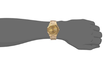 这款SNKK52采用全钢表盘和表带,整体的黄金色显得高端大气上档次,强化玻璃表镜,搭配Harlex矿物晶石表壳,提供了良好的防划性能。同样是全背透设计,自动机械机芯,3点钟位置有星期、日期显示,实用性较强。表盘大小38mm,厚度为12mm,防水深度30米,可以抵抗一般的风雨天,但是不要洗澡时佩戴。现美亚特价只需129美元,5.7折好价,喜欢的朋友速度了,转运到手约¥850(海淘教程)
