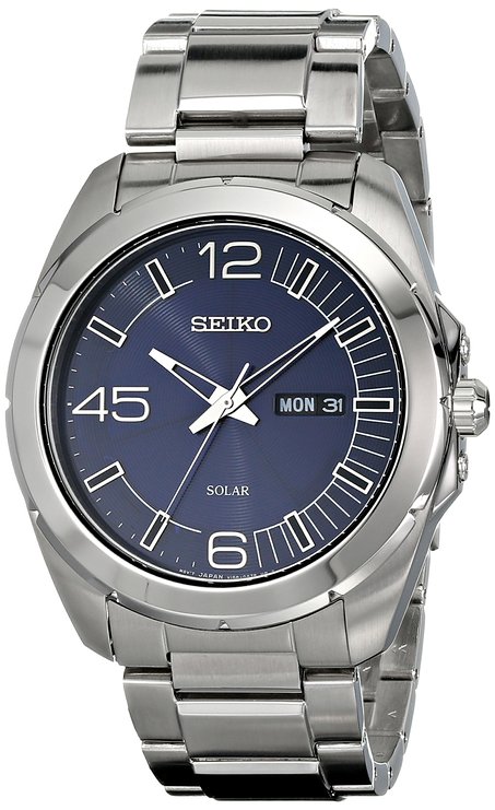 这款精工Seiko男式SNE337 Millennial指针显示日本石英银色手表,采用太阳能供电型石英机芯,确保了时间的精确,蓝色表盘搭配银色夜光指针和条形刻度,不锈钢银色表壳表带,抛光和拉丝表面,3点钟位置显示日期和星期,银色阿拉伯数字和条形刻度,带按钮的折叠式表扣,防水深度100米,非常适合商务男士佩戴,大气实用。
