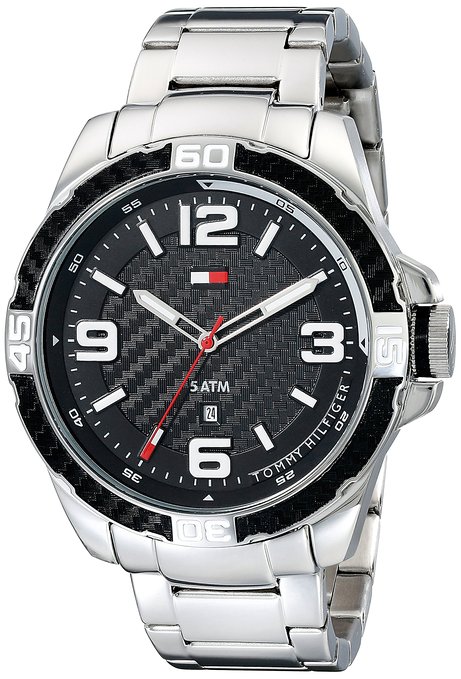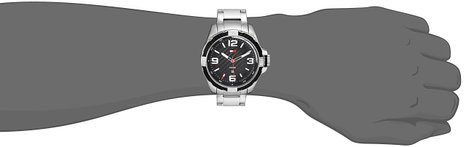 这款Tommy Hilfiger 汤米·希尔费格 Analog Display Quartz Silver 男士石英手表,选用银色精钢制作表身,搭配黑色表盘,大号数字显示时间刻度,红色秒针,整体外观大气,气质非凡,配色全围绕Tommy Hilfiger专属Logo配色展开,给人的整体感觉非常舒适整洁。在配置上采用了日本石英机芯,确保了时间的精准,48mm表径,13.3mm厚度,50米生活防水,足够日常使用了。