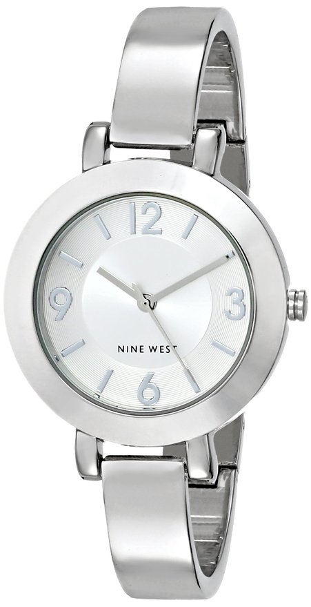这款Nine West NW/1631SVSB 玖熙女士时尚石英手表,内置精确日本石英机芯,保证了时间的精准,外观采用手镯风格设计,非常的时尚,采用银色全钢表壳表链设计,时尚优雅,精致美观,防刮耐磨矿物玻璃表镜下为银色表盘,表盘镶有银色全时刻度和指针,表盘直径34mm,不防水,所以平时佩戴的时候要注意防水哦。手表很适合拿来搭配衣服佩戴,颜色低调,不会太抢眼,有种很优雅的感觉,因此也很容易搭配。