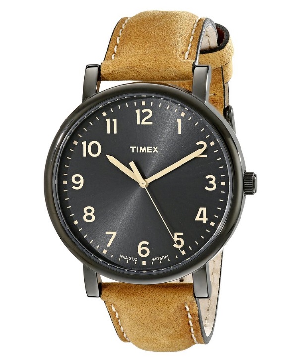 天美时Timex Unisex T2N677AB Originals Black Watch with Tan Leather Band 中性石英手表,采用棕色真皮表带,经典时尚,复古意味浓厚;黑色复古简约大表盘设计,抛光处理的复古表壳,带来一股浓浓的上世纪经典味道,高耐磨矿物水晶镜面,防刮防划痕,Indiglo® 夜光功能,Indiglo是 Timex公司独创的核心技术——一种亮度极大的夜光灯,能保证夜晚全表盘都有夜光,方便晚上也能看时间。30米防水,应付日常生活中的溅水、下雨等毫无压力,表盘直径42毫米、表盘厚度9毫米,适合绝大多数人佩戴。