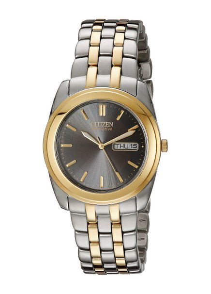 这款Citizen BM8224-51E 西铁城男士光动能石英手表,内置精确日本石英机芯,确保了时间的精准,外观大气洒脱,采用金银配色不锈钢表壳表链设计,气质非凡,防刮耐磨矿物玻璃表镜下为灰色表盘,表盘上镶有金色刻度,边缘精确到秒,3点钟方向为日历显示窗,夜光指针方便夜间读取,夜光效果相当酷,也很实用。表盘直径35mm,防水深度30m。足够应付日常生活。款式简洁大方,适合多种场合佩戴。