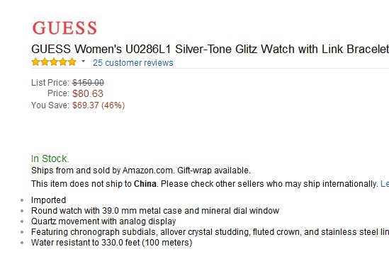 奢华!盖尔斯GUESS U0286L1 女式镶钻时尚手表 $80.63(到手约¥560)
