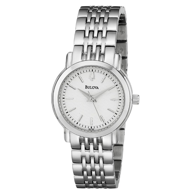 宝路华Bulova Women's 96L190 Analog Display Analog Quartz Silver Watch 女式珍珠母贝时尚手表,一款纯净透彻的手表,一如它纯银的表带和表壳,银色表链上冷峻的色彩刻画出了一丝高贵与优雅。圆形表盘直径仅仅28mm,附着在手上,毫无突兀感,如同自然而成的手镯一样。表盘上银色的刻度和指针,与黑色BULOVA字母相得益彰,简约风范,由此而生。30米生活防水,能够应付日常的下雨、溅水之类的情况,内置一颗精准的石英机芯,保证走时长时间内不会出现误差,总体而言,这是一款相当优雅的手表!
