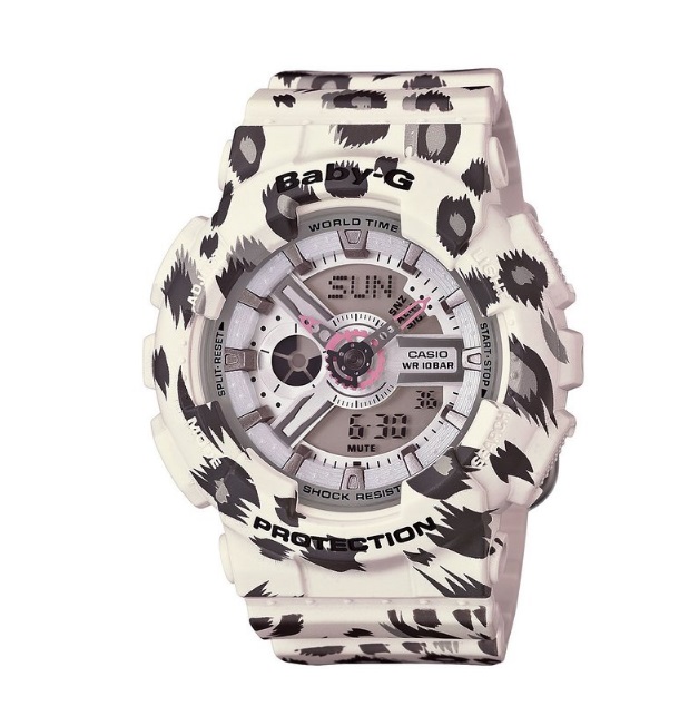卡西欧CASIO G-Shock Baby-G少女时代广告款女表 白盘花带BA-110LP-7A,拥有3D立体表盘的设计搭配齿轮状表圈,将硬朗的线条带入女生的世界。突起的表圈以及恰到好处的表耳表带,增加了手表的防震性能,即使是女汉子也能随心使用。上下两个小窗显示了星期、时间等信息,可以在一个表盘上同时掌握多种实用数据。中空设计的指针,让指针减少了本身的重量,令走时更加精准,减少指针的错位的几率。主要功能:防震、100M防水、LED照明、世界时间(48个城市)、秒表(1/100秒)、倒计时、多功能闹铃,整点响报, 间歇响报、全自动日历、12/24小时时制、按键音开关