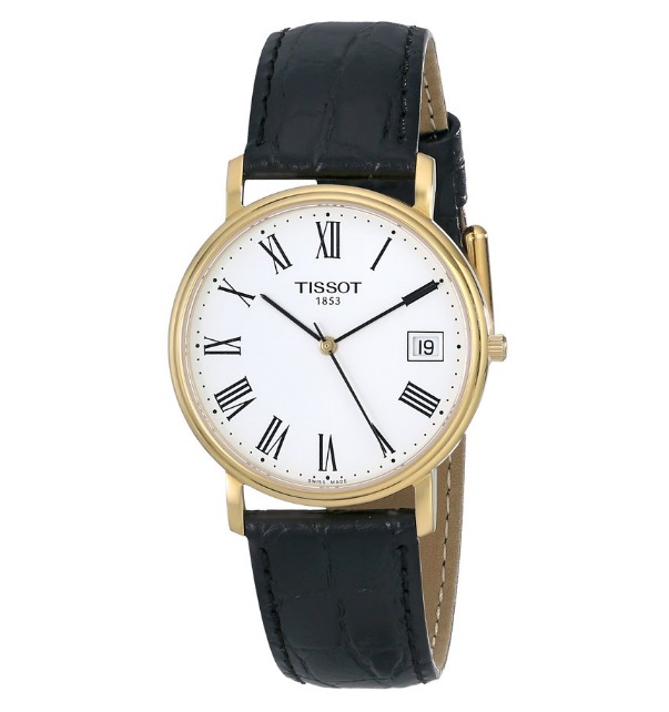 天梭Tissot Men's T52542113 T-Classic Desire Leather 典藏渴望瑞士制造真皮男表,此款天梭男式手表采用34mm不锈钢表壳,拉丝金色调与抛光不锈钢表壳,蓝宝石水晶玻璃表面,耐磨防刮性能一流,日常使用很难出现磨损,白色表盘配以罗马数字的小时刻度,经典的黑色小指针设计,黑色真皮表带,鳄鱼纹路质感丰富,而且显得相当高档时尚,尽显天梭经典男表的优雅与大气,配合走时精确的瑞士石英机芯,是不错的正装配表。30米/ 100英尺的防水,适合日常生活防水,可以防止生活中的溅水、下雨等情况!
