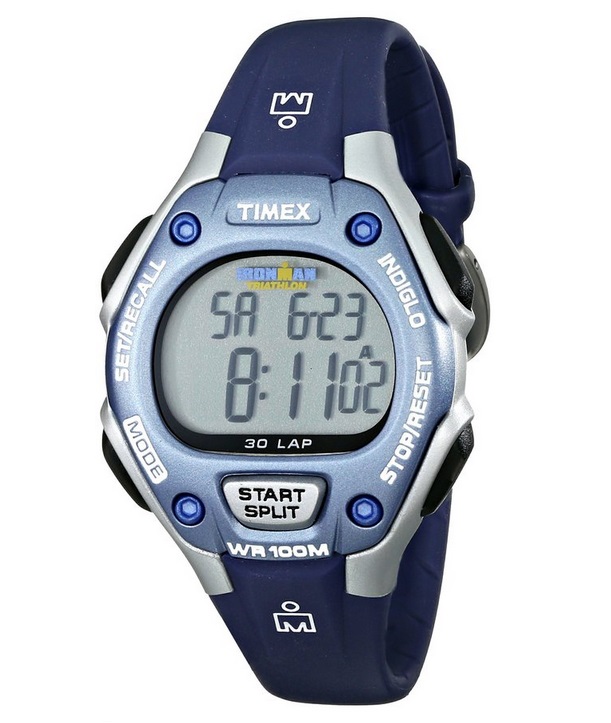 天美时Timex Women's T5K018 Ironman Traditional 30-Lap Blue/Silver-Tone Resin Strap Watch 铁人三项经典女款手表,时尚表款+大众价位让Timex天美时成为美国销量第一的品牌。天美时的铁人三项腕表系列更是以出色的性价比深受运动爱好者的喜爱,比如今天推荐的这款铁人三项女士手表,采用了树脂硅胶表带,带有计时器,具有记录圈数等功能,方便跑步等运动的时候记录,还有倒计时器等功能,100米防水,戴着游泳也是毫无压力的,还带有Timex公司独创的核心技术Indiglo夜光灯,这是一种亮度极大的夜光灯,保证夜里也能无压力看时间!
