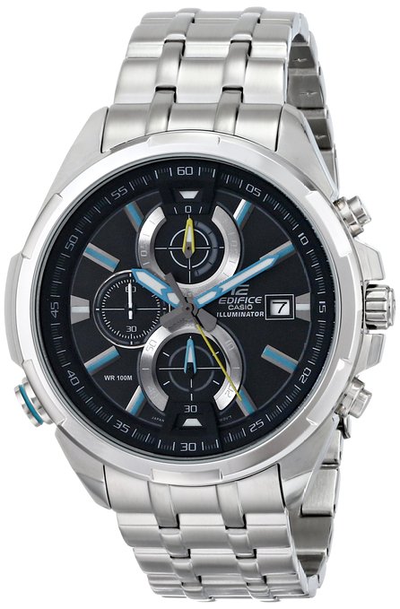 这款手表属于赛车风格的EDIFICE系列表款,现在推出超人气大尺寸表款,创新表框设计由离子IP处理的不锈钢结合铝合金打造而成。测速计时、正常走秒与测速计分。其他技术特性包括:48mm超大表盘,全表不锈钢材质,日本石英机芯。款式经典大方,充满男士的狂野和不羁风采。采用不锈钢表链和表壳,多表盘设计,大表盘上面有三个小表盘,分别显示24小时、星期和日期。防水深度为100米,黑色表盘带可夜光指针与时刻,表径51mm,厚11mm,防水100m,适于浮潜,以及游泳。黑色表盘带,非常适合男性佩戴。