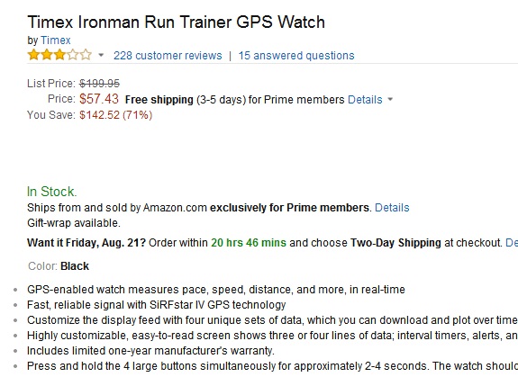 再降!天美时Timex Ironman T5K549 铁人系列心率表 $57.43(到手约¥410)