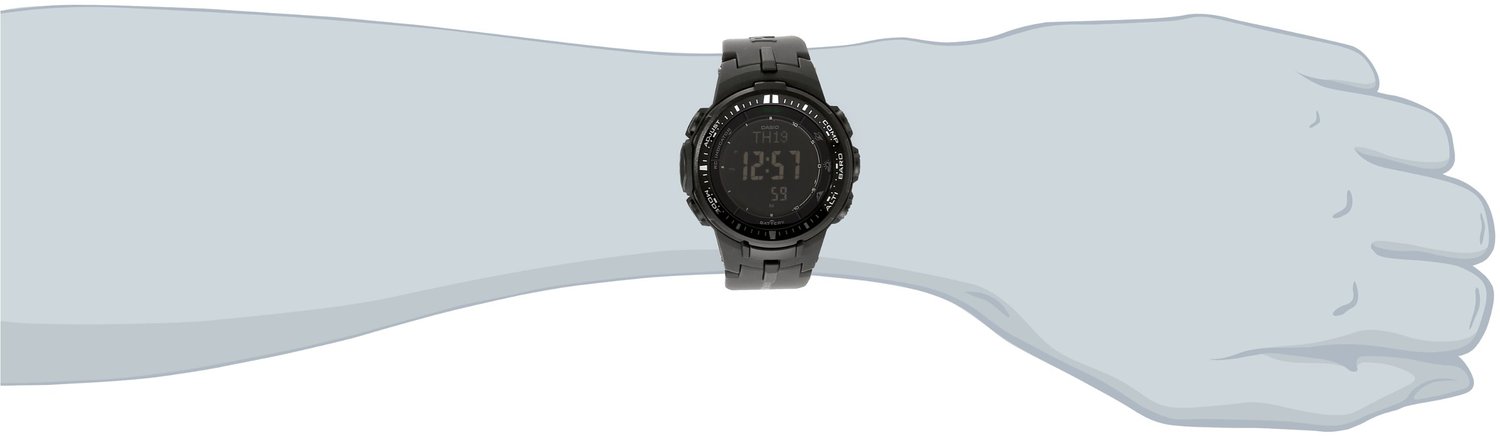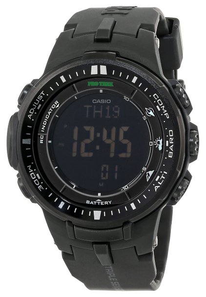 CASIO卡西欧手表是日本三大手表品牌之一,其多功能手表一直比较受大家喜爱。是prw2500系列的升级版,这里主要升级了传感器。 相对于前作,手表的最短计测时间从5秒变成1秒,传感器尺寸减小95%,省电90%。高度和气压的测量误差从2%升级到0.3%。卡西欧 PRW-3000-1ACR 三重感应6局电波表是采用人气大表径系列表款,酷黑的色调,酷感十足,表盘尺寸达到惊人的56mm,6局电波和100M防水,全表以雾面黑为主轴,搭配反转液晶荧幕,具备耐冲击构造、防水200米、LED照明、世界时间、计时码表、倒数计时等多项功能。24小时,全自动日历(预定程序的,直到2099年)。