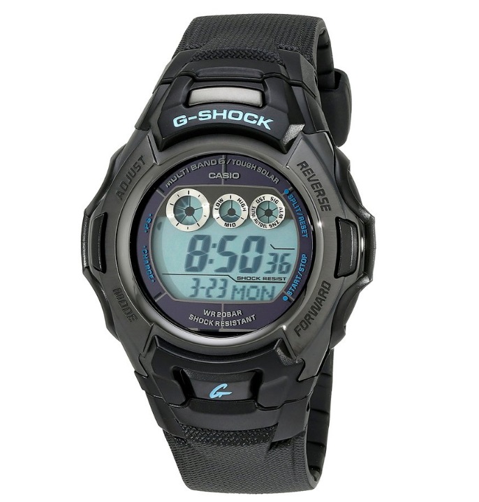 卡西欧Casio Men's GW-M500BA-1CR G-Shock Digital Display Quartz Black Watch 光动能6局电波男表,今年G-Shock系列的一款新表,动力来自太阳能驱动系统,不仅仅是太阳光,连微弱的日光灯源都能被转化为电能。全球6局(US、UK、Germany、Japan、hina)电波标准时间高感度自动接收,自动校正时刻。另外还有世界时间(48个城市31时区+夏令时设定+UTC航空专用世界标准时间显示切换),秒表(1/100秒,24小时计,简便连续计测功能),倒计时(按一分钟单位设定,最大可设定24小时),蜂鸣响音闹铃(可设定5个时间)/ 报时功能,EL背光残照功能,智能省电功能(暗处停留一段时间会自动消失屏幕数字)等功能。